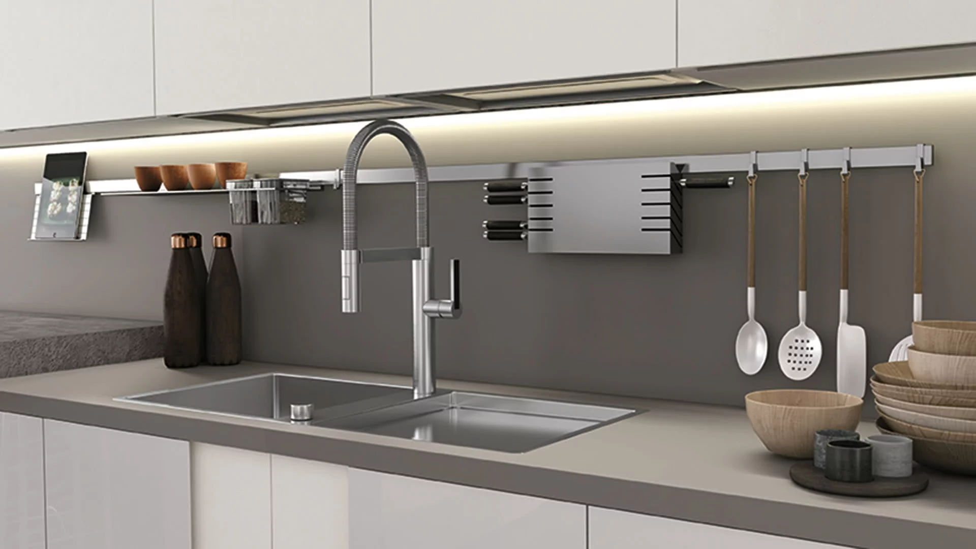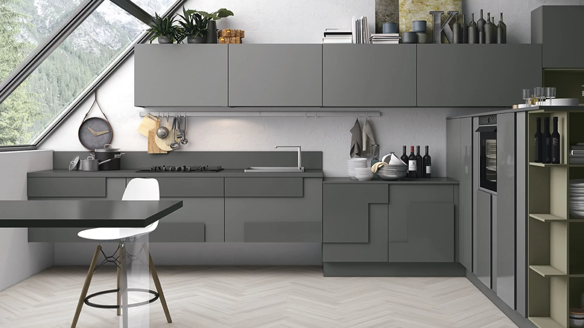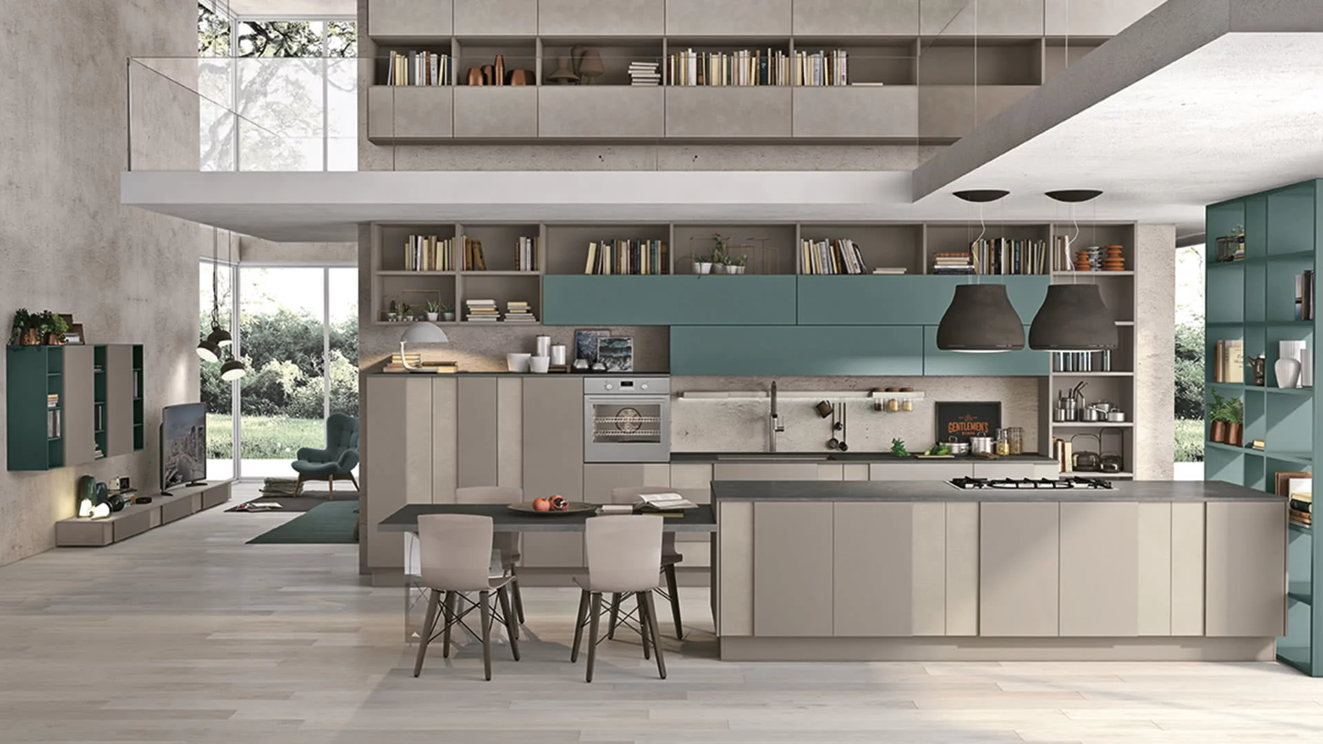 Moving geometries that make your kitchen unique. Creativa is a furnishing program for those who want to design and think their living space in a personal and therefore exclusive way. Games of colors, materials and shapes for endless creativity.